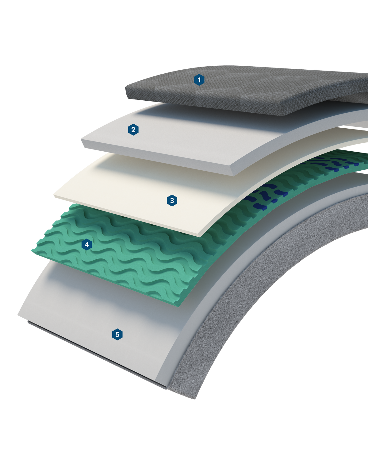 5ContourFLO™ The foundation of the MOLECULE mattress. Firm base support fosters healthy spine alignment. Breathable materials promote even more airflow and heat transfer.