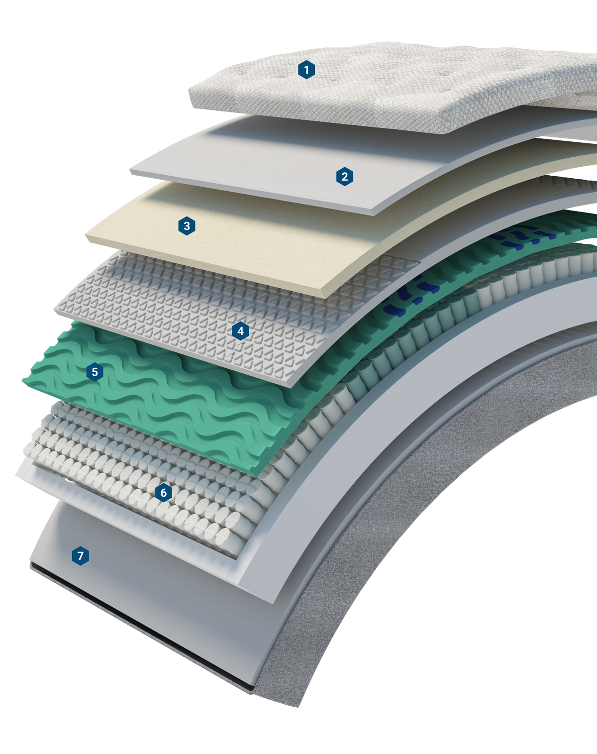 1RESPONSIVE & PLUSH COOL COVER An impressively cool blend of cooling fibers, latex-like support and plush comfort. Cool fibers create a soothing environment for your body to immediately relax. The cover is layered with pillowy fiber and premium foam for responsive comfort and a balanced feel.